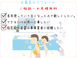 | ※水道、電気、下水道、合併浄化槽工事は資格及び役所の申請が必要です。資格のない業者に依頼すると無資格・無届け工事となり、条例により工事のやり直しとなりますので指定事業者に工事をご依頼ください |
