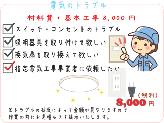 | ※水道、電気、下水道、合併浄化槽工事は資格及び役所の申請が必要です。資格のない業者に依頼すると無資格・無届け工事となり、条例により工事のやり直しとなりますので指定事業者に工事をご依頼ください |
